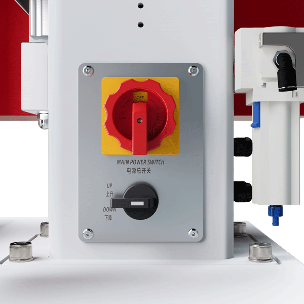 10、立柱右側(cè)設(shè),機頭升降開關(guān),便于調(diào)模對模,電源開關(guān)獨立控制